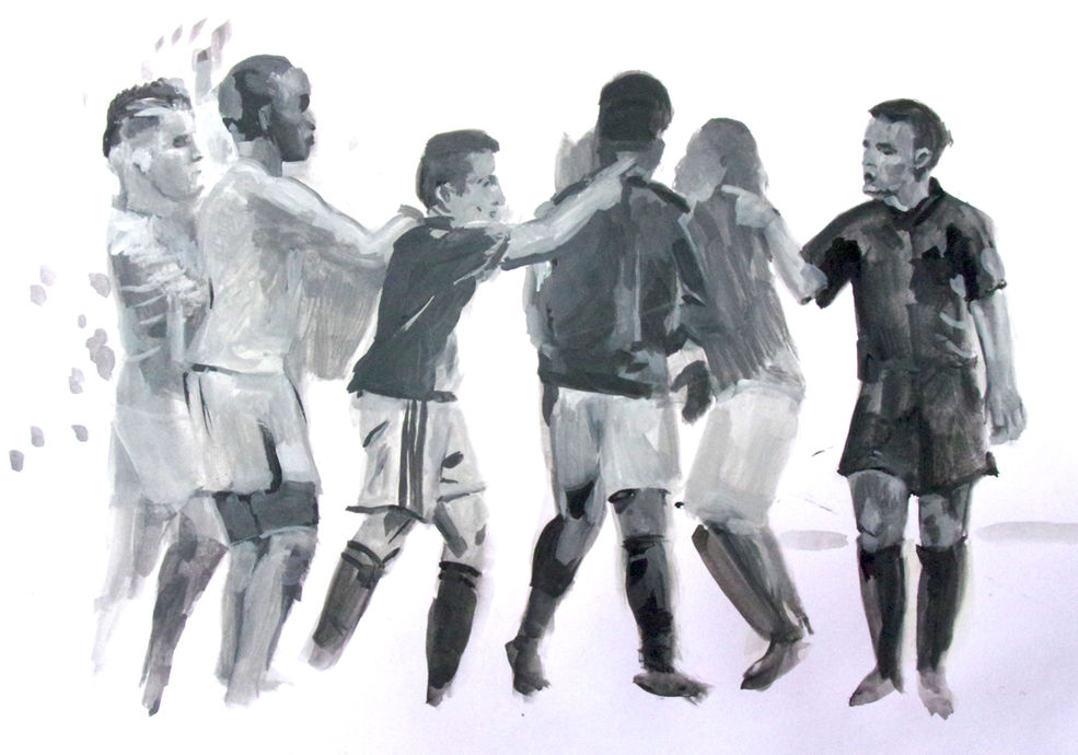 Botinazo a la cara, sin escrúpulos. Me la banco porque tengo que bancar. Sigo jugando. Cada tanto un referí que quiere separar. Un compañere que me agarra del brazo “pará”. ¡Cómo puede ser que no puedas parar! La policía, el fútbol en la esquina, en la canchita del barrio, en la tele, son reflejos de que convivimos con la violencia, no en lo que vemos, en lo que hacemos.